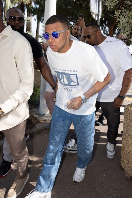 Kylian Mbappe à la sortie de la plage de la Môme lors du 77ème Festival International du Film de Cannes le 19 mai 2024. © Jeremy Melloul / Bestimage Kylian Mbappe leaving La Mome beach during the 77th Cannes international Film Festival on May 19, 2024.