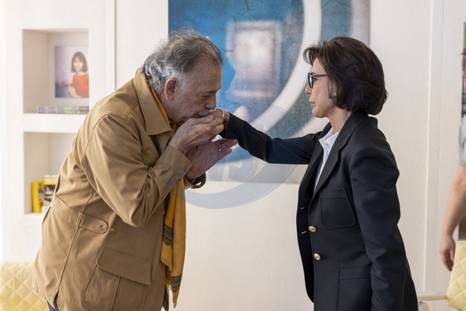 Exclusif - No Tabloids - No Web - Entretien de Rachida Dati (ministre de culture) avec le réalisateur americain Francis Ford Coppola en présence deThomas Langmann (producteur associé du film) dans une suite de l'hôtel Majectic à Cannes lors du 77ème Festival International du Film de Cannes le 18 mai 2024. La ministre de la Culture a été très fière de rencontrer l'îcone du cinéma americain. © Olivier Borde/Bestimage Exclusive - No Tabloids - No Web - For Germany call for price - Interview by Rachida Dati (minister of culture) with American director Francis Ford Coppola in the presence o Thomas Langmann (associate producer of the film) during the 77th Cannes International Film Festival on May 18, 2024.