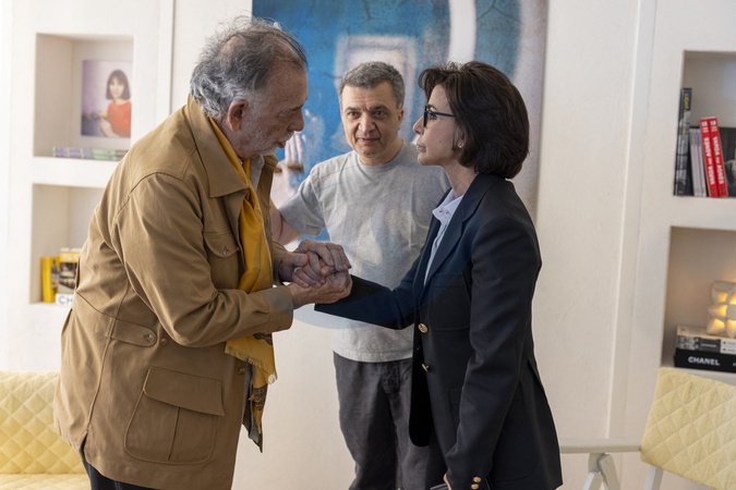 Exclusif - No Tabloids - No Web - Entretien de Rachida Dati (ministre de culture) avec le réalisateur americain Francis Ford Coppola en présence deThomas Langmann (producteur associé du film) dans une suite de l'hôtel Majectic à Cannes lors du 77ème Festival International du Film de Cannes le 18 mai 2024. La ministre de la Culture a été très fière de rencontrer l'îcone du cinéma americain. © Olivier Borde/Bestimage Exclusive - No Tabloids - No Web - For Germany call for price - Interview by Rachida Dati (minister of culture) with American director Francis Ford Coppola in the presence o Thomas Langmann (associate producer of the film) during the 77th Cannes International Film Festival on May 18, 2024.