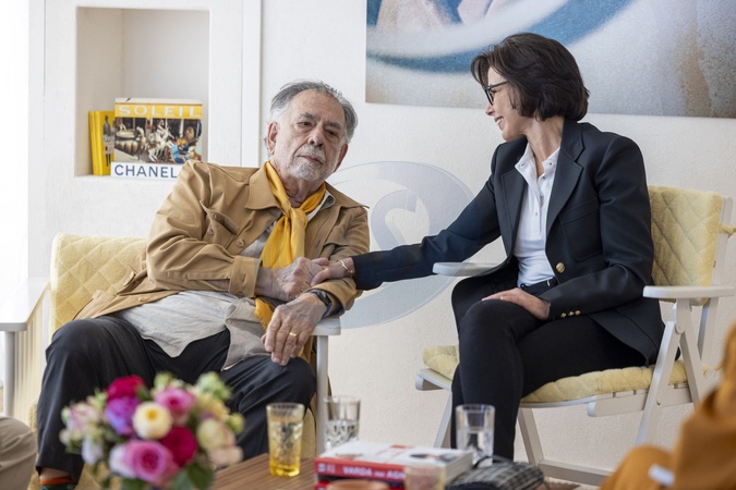 Exclusif - No Tabloids - No Web - Entretien de Rachida Dati (ministre de culture) avec le réalisateur americain Francis Ford Coppola en présence deThomas Langmann (producteur associé du film) dans une suite de l'hôtel Majectic à Cannes lors du 77ème Festival International du Film de Cannes le 18 mai 2024. La ministre de la Culture a été très fière de rencontrer l'îcone du cinéma americain. © Olivier Borde/Bestimage Exclusive - No Tabloids - No Web - For Germany call for price - Interview by Rachida Dati (minister of culture) with American director Francis Ford Coppola in the presence o Thomas Langmann (associate producer of the film) during the 77th Cannes International Film Festival on May 18, 2024.