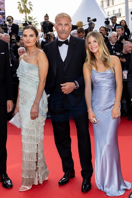 Kevin Costner et ses enfants, Annie, Grace Avery - Montée des marches du film « Horizon : An american saga » lors du 77ème Festival International du Film de Cannes, au Palais des Festivals à Cannes. Le 19 mai 2024 © Jacovides-Moreau / Bestimage Red carpet of the movie « Horizon : An american saga» during the 77th Cannes International Film Festival at the Palais des Festivals in Cannes, France. On may 19th 2024