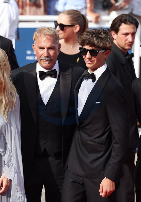 Kevin Costner et son fils Hayes Costner - Montée des marches du film « Horizon : An american saga » lors du 77ème Festival International du Film de Cannes, au Palais des Festivals à Cannes. Le 19 mai 2024 © Jacovides-Moreau / Bestimage Red carpet of the movie « Horizon : An american saga» during the 77th Cannes International Film Festival at the Palais des Festivals in Cannes, France. On may 19th 2024