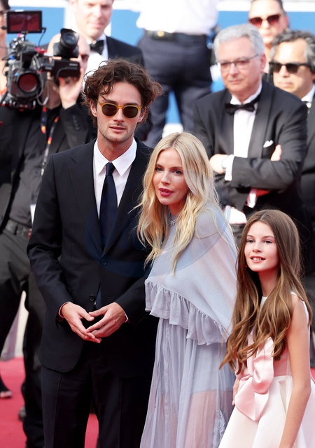 Sienna Miller, sa fille Marlowe Sturridge et son compagnon Oli Green - Montée des marches du film « Horizon : An american saga » lors du 77ème Festival International du Film de Cannes, au Palais des Festivals à Cannes. Le 19 mai 2024 © Jacovides-Moreau / Bestimage Red carpet of the movie « Horizon : An american saga» during the 77th Cannes International Film Festival at the Palais des Festivals in Cannes, France. On may 19th 2024