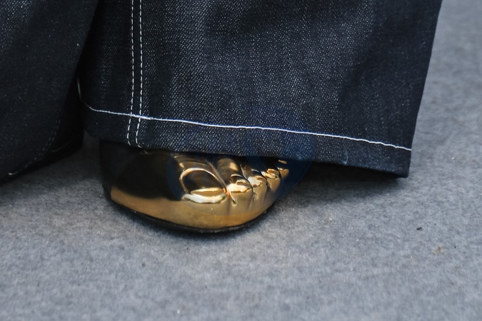 Sienna Miller poses at the Photocall for Horizon - An America Saga during the 77th Festival de Cannes on Sunday 19 May 2024 at Le Palais des festivals, Cannes. Fashion Detail - Metalic Shoes., Credit:Julie Edwards / Avalon