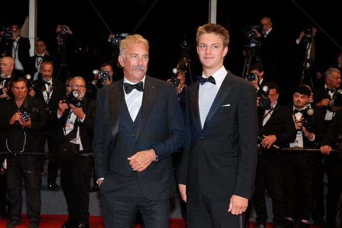 Kevin Costner et son fils Cayden Wyatt - Descente des marches du film « Horizon : An american saga» lors du 77ème Festival International du Film de Cannes, au Palais des Festivals à Cannes. Le 19 mai 2024 © Jacovides-Moreau / Bestimage People leaving the red carpet of the movie « Horizon : An american saga» during the 77th Cannes International Film Festival at the Palais des Festivals in Cannes, France. On may 19th 2024