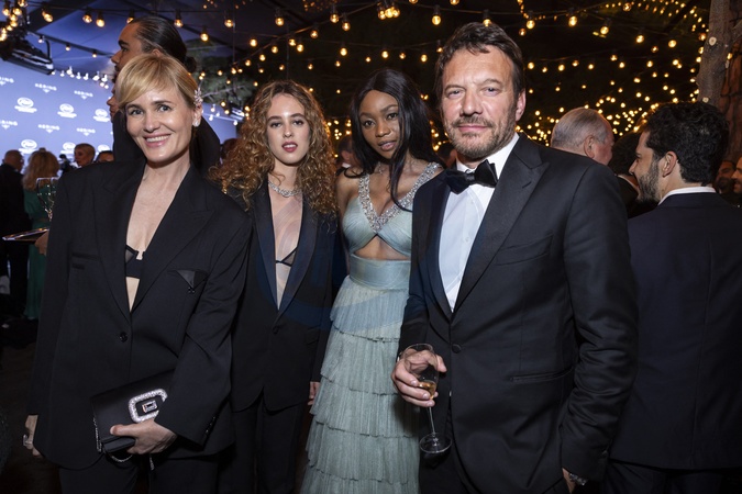 Judith Godrèche et sa fille Tess Bartélemy, Daniela Stock et Samuel Le Bihan - Personnalités au dîner "Women in Motion" par le groupe Kering, Place de la Castre, lors du 77ème Festival International du Film de Cannes. Le 19 mai 2024 © Olivier Borde / Bestimage 2024 Kering Women In Motion Awards and Cannes Film Festival Presidential Dinner at the 77th annual Cannes Film Festival at the Place de la Castre. On May 19, 2024