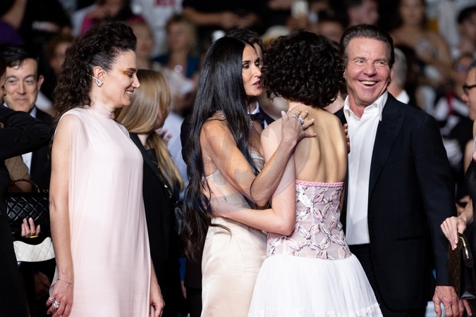Coralie Fargeat, Demi Moore, Margaret Qualley, Dennis Quaid - Montée des marches du film « The Substance » lors du 77ème Festival International du Film de Cannes, au Palais des Festivals à Cannes. Le 19 mai 2024 © Jacovides-Moreau / Bestimage Red carpet of the movie « The Substance » during the 77th Cannes International Film Festival at the Palais des Festivals in Cannes, France. On may 19th 2024