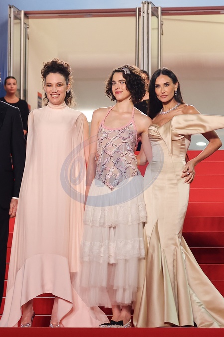 Coralie Fargeat, Margaret Qualley, Demi Moore - Montée des marches du film « The Substance » lors du 77ème Festival International du Film de Cannes, au Palais des Festivals à Cannes. Le 19 mai 2024 © Jacovides-Moreau / Bestimage Red carpet of the movie « The Substance » during the 77th Cannes International Film Festival at the Palais des Festivals in Cannes, France. On may 19th 2024
