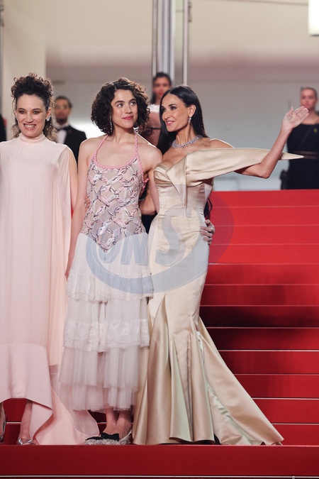 Coralie Fargeat, Margaret Qualley, Demi Moore - Montée des marches du film « The Substance » lors du 77ème Festival International du Film de Cannes, au Palais des Festivals à Cannes. Le 19 mai 2024 © Jacovides-Moreau / Bestimage Red carpet of the movie « The Substance » during the 77th Cannes International Film Festival at the Palais des Festivals in Cannes, France. On may 19th 2024