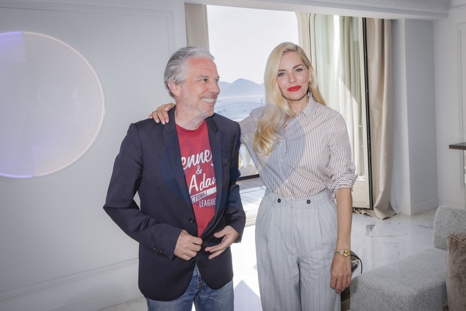 Sienna Miller podczas wywiadu Philippe'a Vandela wyemitowanego 20 maja w France Info TV z 77. Międzynarodowego Festiwalu Filmowego w Cannes