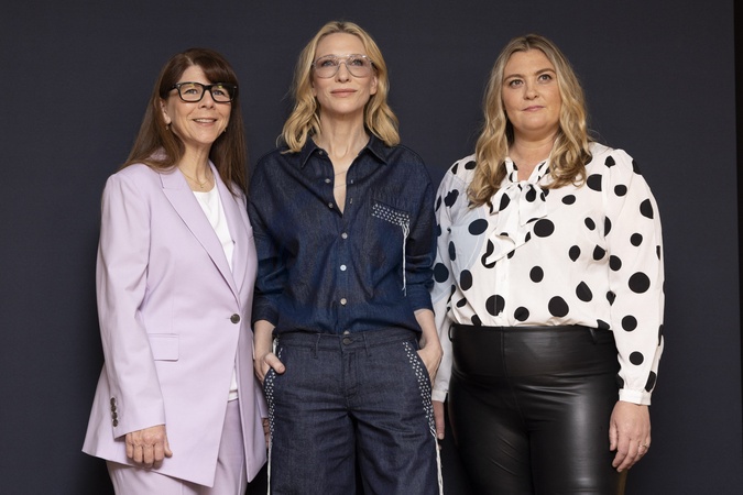 Dr. Stacy L. Smith, Cate Blanchett et Coco Francini en conférence Kering Talks Women In Motion lors du 77ème Festival International du Film de Cannes à l'Hôtel Majestic, à Cannes, France, le 20 mai 2024. © Olivier Borde/Bestimage Cate Blanchett attends the Kering Women in Motion Photocall at the 77th annual Cannes Film Festival at Majestic Hotel on May 20, 2024 in Cannes, France.