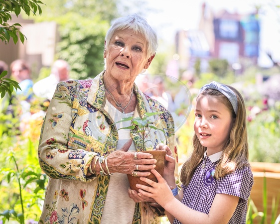London, UK, 20th May 2024. Dame Judi Dench attends the Octavia Hill Garden by Blue Diamond with the National Trust. She is joined by Charlotte, a student at a Northumbrian School to place a seedling from the Sycamore Gap Tree RHS Chelsea Flower Show 2024 opens with its press day, revealing new garden designs, floral displays and horticultural products from 21-25th May., Credit:Imageplotter / Avalon