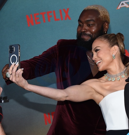 Abraham Popoola and Jennifer Lopez arriving to Netfilx's "ATLAS” premiere held at the Egyptian Theatre on May 20, 2024 in Hollywood, Ca.© Lisa OConnor/AFF-USA.com