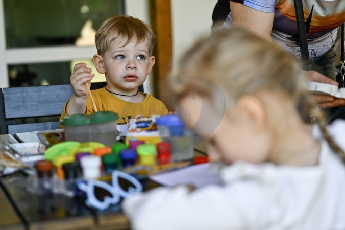 ZAPORIZHZHIA, UKRAINE - MAY 18, 2024 - A student of the Zaporizhzhia Special Boarding School "Dzherelo" paints during his visit to the Patriot Zaporizhzhia Equestrian Club as part of the project "United by Zaporizhzhia: Inspiration Expedition" on Khortytsia Island, Zaporizhzhia, southeastern Ukraine., Credit:Dmytro Smolienko / Avalon