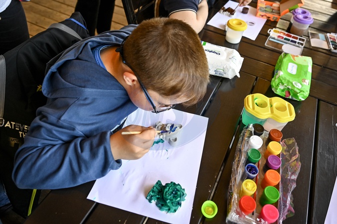 ZAPORIZHZHIA, UKRAINE - MAY 18, 2024 - A student of the Zaporizhzhia Special Boarding School "Dzherelo" paints during his visit to the Patriot Zaporizhzhia Equestrian Club as part of the project "United by Zaporizhzhia: Inspiration Expedition" on Khortytsia Island, Zaporizhzhia, southeastern Ukraine., Credit:Dmytro Smolienko / Avalon