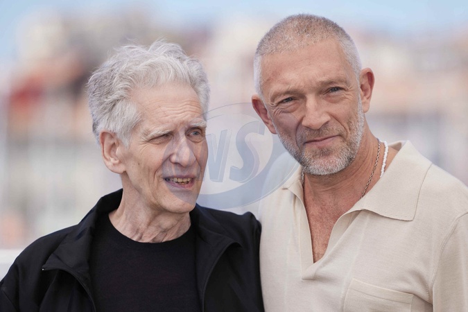 Vincent Cassel, le réalisateur David Cronenberg - Photocall du film "The Shrouds" ("Les linceuls" / Compétition) lors du 77ème Festival International du Film de Cannes (14 - 25 mai 2024), le 21 mai 2024. © Moreau / Jacovides / Bestimage Photocall of the movie "The Shrouds" ("Les linceuls" / Competition) during the 77th Cannes International Film Festival (May 14 - 25, 2024), May 21st, 2024.