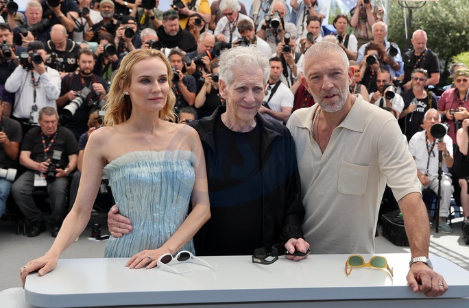 Diane Kruger, le réalisateur David Cronenberg, Vincent Cassel - Photocall du film "The Shrouds" ("Les linceuls" / Compétition) lors du 77ème Festival International du Film de Cannes (14 - 25 mai 2024), le 21 mai 2024. © Jacovides / Moreau / Bestimage Photocall of the movie "The Shrouds" ("Les linceuls" / Competition) during the 77th Cannes International Film Festival (May 14 - 25, 2024), May 21st, 2024