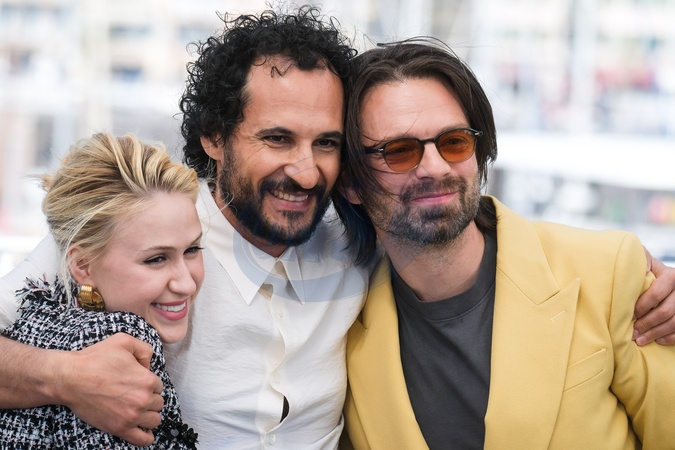 Maria Bakalova, Ali Abbasi, Sebastian Stan poses at the Photocall for The Apprentice during the 77th Festival de Cannes on Tuesday 21 May 2024 at Le Palais des festivals, Cannes. ., Credit:Julie Edwards / Avalon