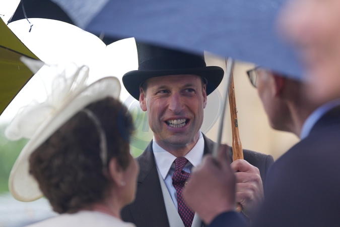 London, UK, 21 May 2024: Prince William speaks to guests attending the Royal Garden Party organised by King Charles III at Buckingham Palace in London., Credit:Yui Mok / Avalon