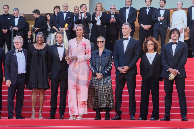 Thierry Rey, Marie-Josée Perec, Tony Estanguet, Iliana Rupert et la flamme Olympique, Marie Patouillet, Alexis Hanquinquant, Nélia Barbosa, Arnaud Assoumani - Montée des marches du film « Marcello Mio » lors du 77ème Festival International du Film de Cannes, au Palais des Festivals à Cannes. Le 21 mai 2024 © Christophe Clovis / Bestimage Red carpet of the movie « Marcello Mio » during the 77th Cannes International Film Festival at the Palais des Festivals in Cannes, France. On may 21th 2024