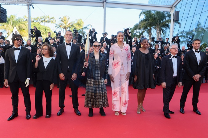 Arnaud Assoumani, Nélia Barbosa, Alexis Hanquinquant, Marie Patouillet et la flamme Olympique, Iliana Rupert, Marie-Josée Perec, Thierry Rey, Tony Estanguet - Montée des marches du film « Marcello Mio » lors du 77ème Festival International du Film de Cannes, au Palais des Festivals à Cannes. Le 21 mai 2024 © Christophe Clovis / Bestimage Red carpet of the movie « Marcello Mio » during the 77th Cannes International Film Festival at the Palais des Festivals in Cannes, France. On may 21th 2024