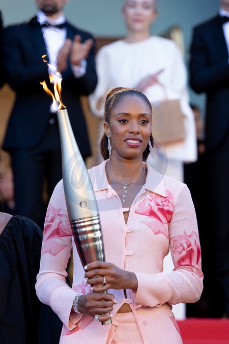 Iliana Rupert et la flamme olympique - Montée des marches du film « Marcello Mio » lors du 77ème Festival International du Film de Cannes, au Palais des Festivals à Cannes. Le 21 mai 2024 © Jacovides-Moreau / Bestimage Red carpet of the movie « Marcello Mio » during the 77th Cannes International Film Festival at the Palais des Festivals in Cannes, France. On may 21th 2024