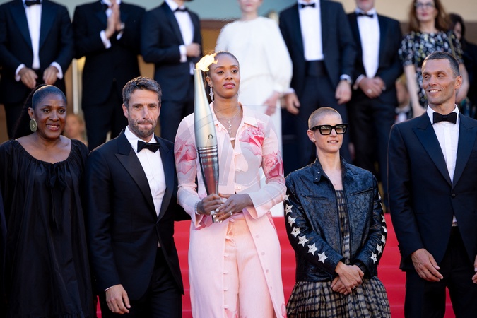 Marie-Josée Perec, Tony Estanguet, Iliana Rupert et la flamme olympique, Marie Patouillet, Alexis Hanquinquant - Montée des marches du film « Marcello Mio » lors du 77ème Festival International du Film de Cannes, au Palais des Festivals à Cannes. Le 21 mai 2024 © Jacovides-Moreau / Bestimage Red carpet of the movie « Marcello Mio » during the 77th Cannes International Film Festival at the Palais des Festivals in Cannes, France. On may 21th 2024