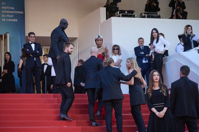 M - Kelly Rowland et les agents de la sécurité lors de la montée des marches du film « Marcello Mio » lors du 77ème Festival International du Film de Cannes