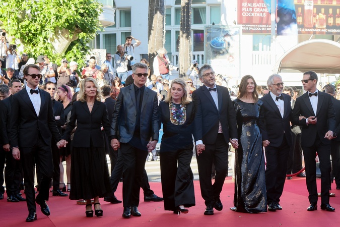Hugh Skinner, Nicole Garcia, Benjamin Biolay, Catherine Deneuve, Christophe Honoré, Chiara Mastroianni, Fabrice Luchini, Melvil Poupaud - Montée des marches du film « Marcello Mio » lors du 77ème Festival International du Film de Cannes, au Palais des Festivals à Cannes. Le 21 mai 2024 © Christophe Clovis / Bestimage Red carpet of the movie « Marcello Mio » during the 77th Cannes International Film Festival at the Palais des Festivals in Cannes, France. On may 21th 2024