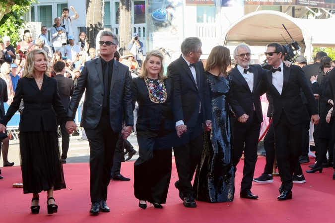 Nicole Garcia, Benjamin Biolay, Catherine Deneuve, Christophe Honoré, Chiara Mastroianni, Fabrice Luchini, Melvil Poupaud - Montée des marches du film « Marcello Mio » lors du 77ème Festival International du Film de Cannes, au Palais des Festivals à Cannes. Le 21 mai 2024 © Christophe Clovis / Bestimage Red carpet of the movie « Marcello Mio » during the 77th Cannes International Film Festival at the Palais des Festivals in Cannes, France. On may 21th 2024
