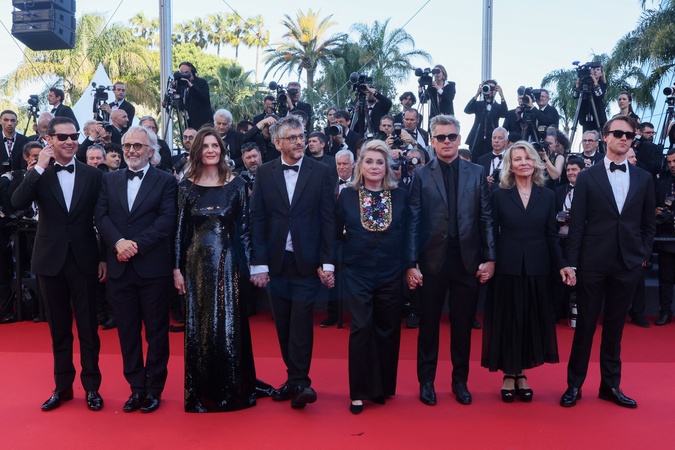 Melvil Poupaud, Fabrice Luchini, Chiara Mastroianni, Christophe Honoré, Catherine Deneuve, Benjamin Biolay, Nicole Garcia, Hugh Skinner - Montée des marches du film « Marcello Mio » lors du 77ème Festival International du Film de Cannes, au Palais des Festivals à Cannes. Le 21 mai 2024 © Christophe Clovis / Bestimage Red carpet of the movie « Marcello Mio » during the 77th Cannes International Film Festival at the Palais des Festivals in Cannes, France. On may 21th 2024