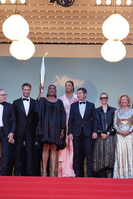 Thierry Rey, Tony Estanguet, Marie-Josée Perec et la flamme Olympique, Iliana Rupert, David Lisnard, Marie Patouillet, Iris Knobloch - Montée des marches du film « Marcello Mio » lors du 77ème Festival International du Film de Cannes, au Palais des Festivals à Cannes. Le 21 mai 2024 © Jacovides-Moreau / Bestimage Red carpet of the movie « Marcello Mio » during the 77th Cannes International Film Festival at the Palais des Festivals in Cannes, France. On may 21th 2024