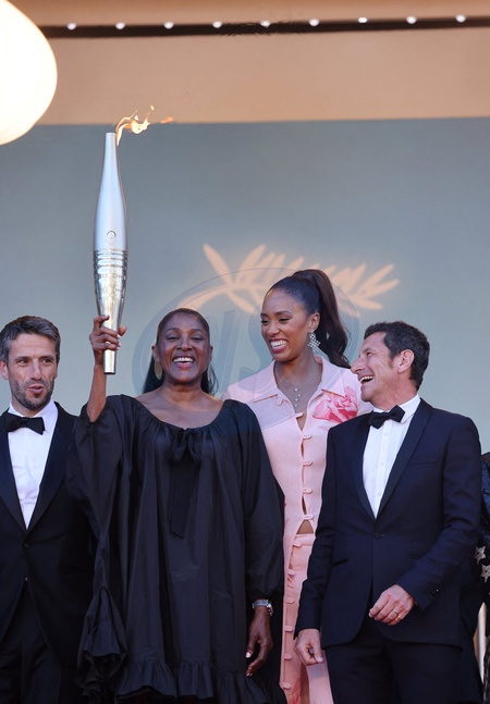 Tony Estanguet, Marie-Josée Perec et la flamme Olympique, Iliana Rupert, David Lisnard - Montée des marches du film « Marcello Mio » lors du 77ème Festival International du Film de Cannes, au Palais des Festivals à Cannes. Le 21 mai 2024 © Jacovides-Moreau / Bestimage Red carpet of the movie « Marcello Mio » during the 77th Cannes International Film Festival at the Palais des Festivals in Cannes, France. On may 21th 2024