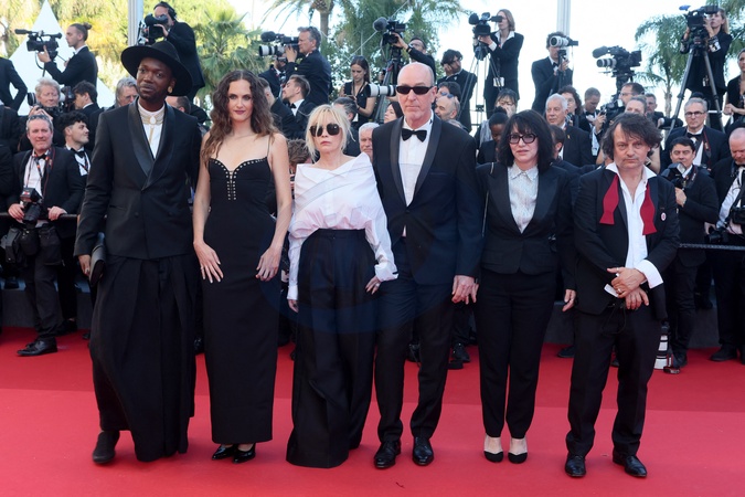 Baloji, Zoé Wittock, Emmanuelle Béart, Pascal Buron, Nathalie Chifflet, Gilles Porte (Jury Caméra d'Or) - Montée des marches du film « Marcello Mio » lors du 77ème Festival International du Film de Cannes, au Palais des Festivals à Cannes. Le 21 mai 2024 © Christophe Clovis / Bestimage Red carpet of the movie « Marcello Mio » during the 77th Cannes International Film Festival at the Palais des Festivals in Cannes, France. On may 21th 2024