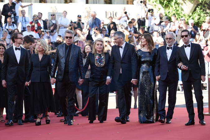 Hugh Skinner, Nicole Garcia, Benjamin Biolay, Catherine Deneuve, Christophe Honoré, Chiara Mastroianni, Fabrice Luchini, Melvil Poupaud - Montée des marches du film « Marcello Mio » lors du 77ème Festival International du Film de Cannes, au Palais des Festivals à Cannes. Le 21 mai 2024 © Jacovides-Moreau / Bestimage Red carpet of the movie « Marcello Mio » during the 77th Cannes International Film Festival at the Palais des Festivals in Cannes, France. On may 21th 2024