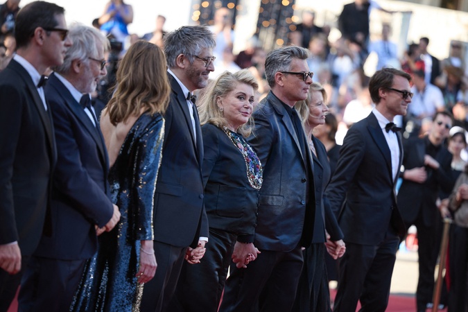 Melvil Poupaud, Fabrice Luchini, Chiara Mastroianni, Christophe Honoré, Catherine Deneuve, Benjamin Biolay, Nicole Garcia, Hugh Skinner - Montée des marches du film « Marcello Mio » lors du 77ème Festival International du Film de Cannes, au Palais des Festivals à Cannes. Le 21 mai 2024 © Jacovides-Moreau / Bestimage Red carpet of the movie « Marcello Mio » during the 77th Cannes International Film Festival at the Palais des Festivals in Cannes, France. On may 21th 2024