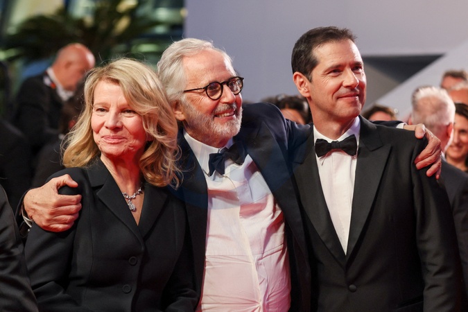 Nicole Garcia, Fabrice Luchini, Melvil Poupaud - Descente des marches du film « Marcello Mio » lors du 77ème Festival International du Film de Cannes, au Palais des Festivals à Cannes. Le 21 mai 2024 © Christophe Clovis / Bestimage People leaving the red carpet of the movie « Marcello Mio» during the 77th Cannes International Film Festival at the Palais des Festivals in Cannes, France. On may 21th 2024