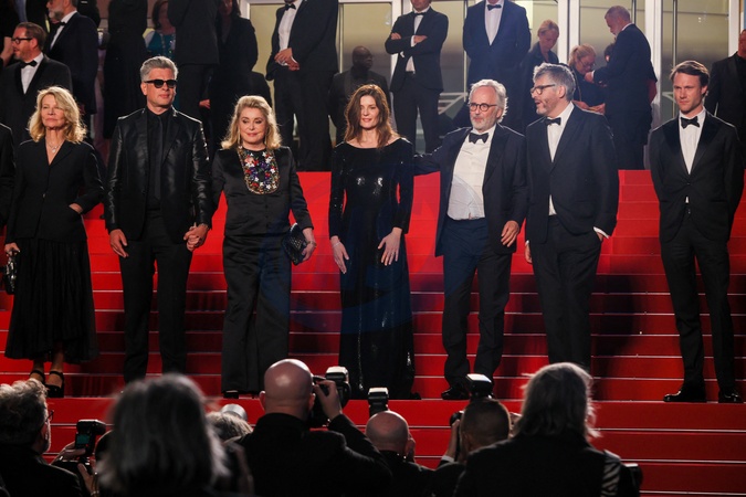 Nicole Garcia, Benjamin Biolay, Catherine Deneuve, Chiara Mastroianni, Fabrice Luchini, Christophe Honoré, Hugh Skinner - Descente des marches du film « Marcello Mio » lors du 77ème Festival International du Film de Cannes, au Palais des Festivals à Cannes. Le 21 mai 2024 © Christophe Clovis / Bestimage People leaving the red carpet of the movie « Marcello Mio» during the 77th Cannes International Film Festival at the Palais des Festivals in Cannes, France. On may 21th 2024