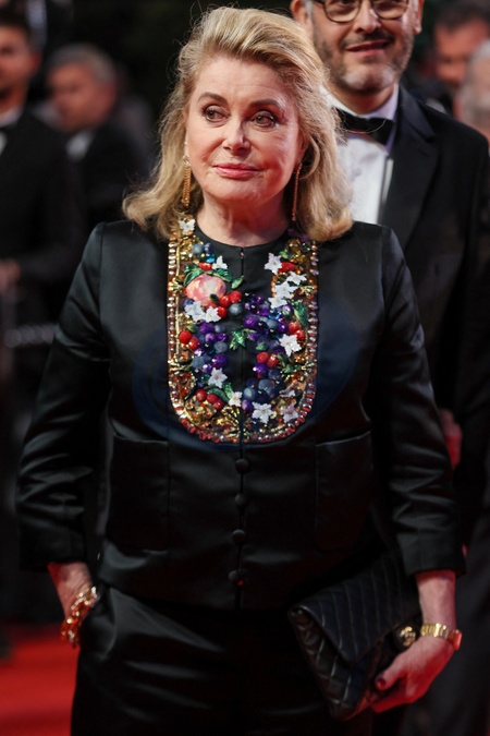 Catherine Deneuve - Descente des marches du film « Marcello Mio » lors du 77ème Festival International du Film de Cannes, au Palais des Festivals à Cannes. Le 21 mai 2024 © Christophe Clovis / Bestimage People leaving the red carpet of the movie « Marcello Mio» during the 77th Cannes International Film Festival at the Palais des Festivals in Cannes, France. On may 21th 2024
