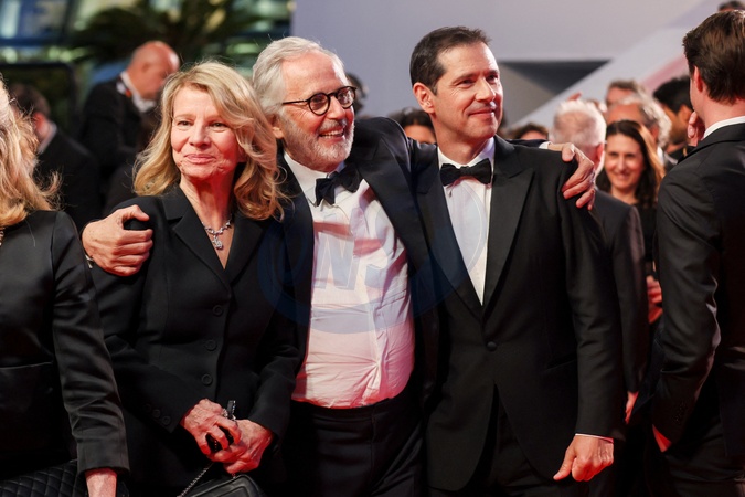 Nicole Garcia, Fabrice Luchini, Melvil Poupaud - Descente des marches du film « Marcello Mio » lors du 77ème Festival International du Film de Cannes, au Palais des Festivals à Cannes. Le 21 mai 2024 © Christophe Clovis / Bestimage People leaving the red carpet of the movie « Marcello Mio» during the 77th Cannes International Film Festival at the Palais des Festivals in Cannes, France. On may 21th 2024