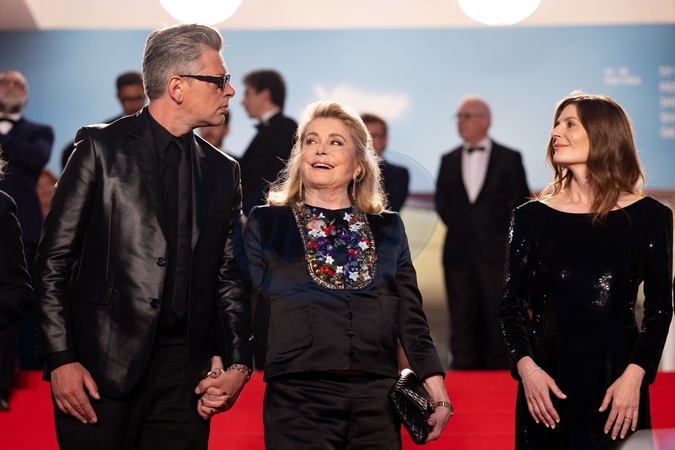 Benjamin Biolay, Catherine Deneuve, Chiara Mastroianni - Descente des marches du film « Marcello Mio» lors du 77ème Festival International du Film de Cannes, au Palais des Festivals à Cannes. Le 21 mai 2024 © Jacovides-Moreau / Bestimage People leaving the red carpet of the movie « Marcello Mio» during the 77th Cannes International Film Festival at the Palais des Festivals in Cannes, France. On may 21th 2024
