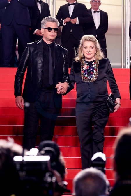 Benjamin Biolay, Catherine Deneuve - Descente des marches du film « Marcello Mio» lors du 77ème Festival International du Film de Cannes, au Palais des Festivals à Cannes. Le 21 mai 2024 © Jacovides-Moreau / Bestimage People leaving the red carpet of the movie « Marcello Mio» during the 77th Cannes International Film Festival at the Palais des Festivals in Cannes, France. On may 21th 2024