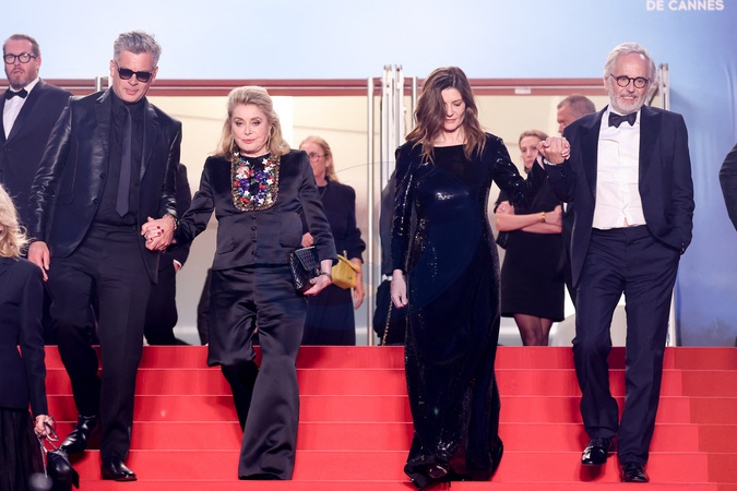 Benjamin Biolay, Catherine Deneuve et sa fille Chiara Mastroianni, Fabrice Luchini - Descente des marches du film « Marcello Mio» lors du 77ème Festival International du Film de Cannes, au Palais des Festivals à Cannes. Le 21 mai 2024 © Jacovides-Moreau / Bestimage People leaving the red carpet of the movie « Marcello Mio» during the 77th Cannes International Film Festival at the Palais des Festivals in Cannes, France. On may 21th 2024