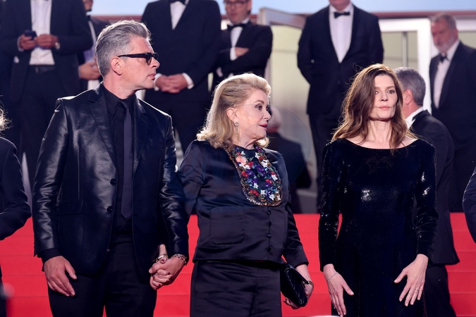 Benjamin Biolay, Catherine Deneuve et sa fille Chiara Mastroianni - Descente des marches du film « Marcello Mio» lors du 77ème Festival International du Film de Cannes, au Palais des Festivals à Cannes. Le 21 mai 2024 © Jacovides-Moreau / Bestimage People leaving the red carpet of the movie « Marcello Mio» during the 77th Cannes International Film Festival at the Palais des Festivals in Cannes, France. On may 21th 2024