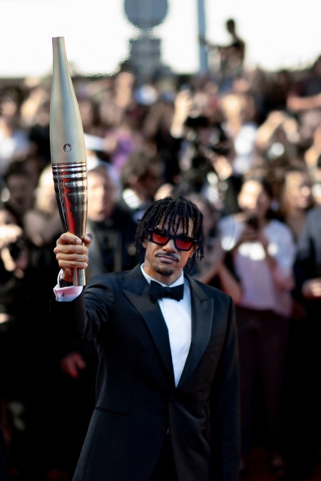 Arnaud Assoumani et la flamme olympique - Montée des marches du film « Marcello Mio » lors du 77ème Festival International du Film de Cannes, au Palais des Festivals à Cannes. Le 21 mai 2024 © Norbert Scanella / Panoramic / Bestimage Red carpet of the movie « Marcello Mio » during the 77th Cannes International Film Festival at the Palais des Festivals in Cannes, France. On may 21th 2024