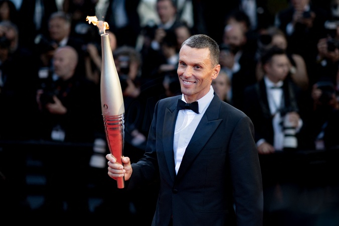 Alexis Hanquinquant et la flamme olympique - Montée des marches du film « Marcello Mio » lors du 77ème Festival International du Film de Cannes, au Palais des Festivals à Cannes. Le 21 mai 2024 © Norbert Scanella / Panoramic / Bestimage Red carpet of the movie « Marcello Mio » during the 77th Cannes International Film Festival at the Palais des Festivals in Cannes, France. On may 21th 2024