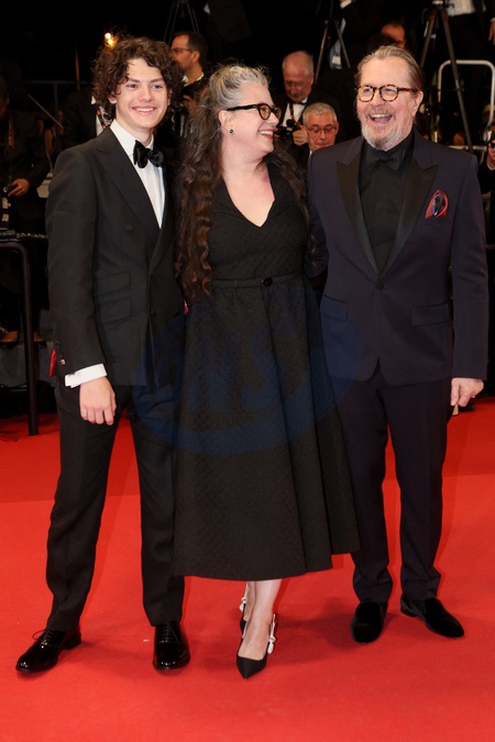 Gary Oldman, son fils et sa femme Gisele Schmidt - Montée des marches du film « Parthenope » lors du 77ème Festival International du Film de Cannes, au Palais des Festivals à Cannes. Le 21 mai 2024 © Christophe Clovis / Bestimage Red carpet of the movie « Parthenope » during the 77th Cannes International Film Festival at the Palais des Festivals in Cannes, France. On may 21th 2024
