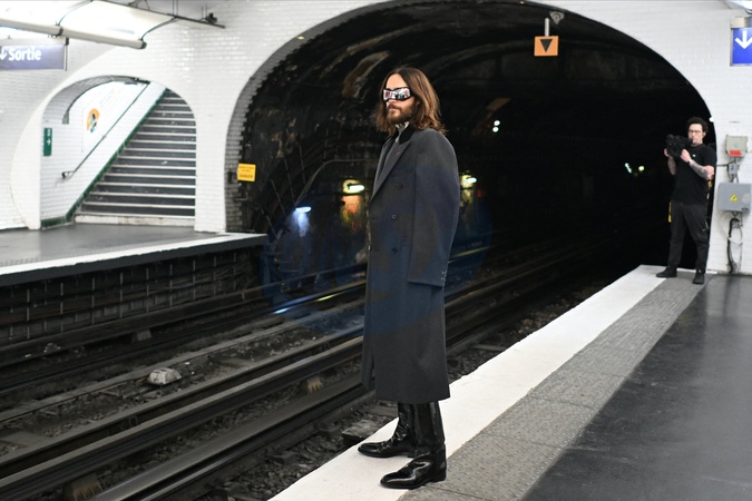 Jared Leto opuszcza hotel Costes i udaje się do Maison Margiela, a następnie wsiada do metra, aby udać się na koncert w Accor Arena w Paryżu