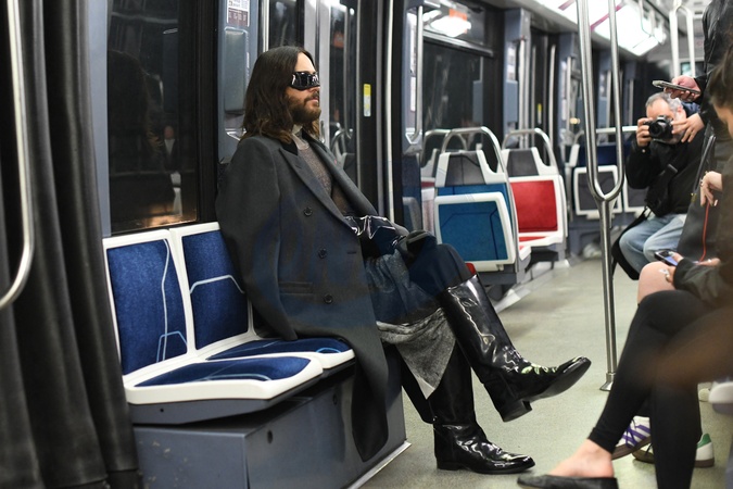 Exclusif - Prix Special - Jared Leto sort de l’hôtel Costes pour se rendre à la Maison Margiela ensuite il prend le métro pour se rendre à son concert à l’Accor Arena à Paris