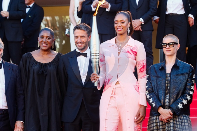 Marie-José Pérec, Tony Estanguet, Iliana Rupert et la flamme Olympique, Marie Patouillet - Montée des marches du film « Marcello Mio » lors du 77ème Festival International du Film de Cannes, au Palais des Festivals à Cannes. Le 21 mai 2024 © Christophe Clovis / Bestimage Red carpet of the movie « Marcello Mio » during the 77th Cannes International Film Festival at the Palais des Festivals in Cannes, France. On may 21th 2024